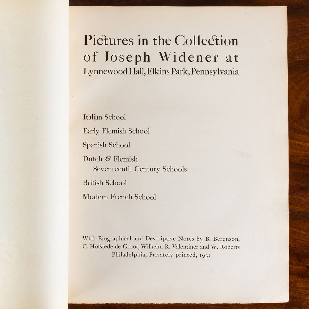 Pictures in the Collection of Joseph Widener at Lynnewood Hall, Elkins Park, Pennsylvania: Italian School, Early Flemish School, Spanish School, Dutch & Flemish Seventeenth Century Schools, British School, and Modern French School